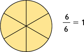 Una fracción es igual a la unidad si el numerador y el denominador son el mismo número, es decir, son iguales. Esta igualdad significa que las partes que se han tomado de la unidad son iguales al número total de partes.
